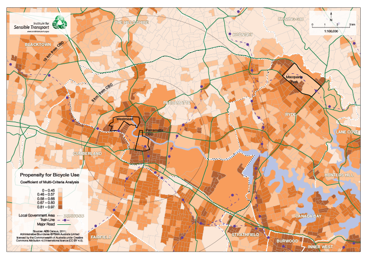 - Development of Australia’s first Bike Use Propensity Index; a geospatial analysis of how propensity to cycle differs within each small area that make up the City of Parramatta.