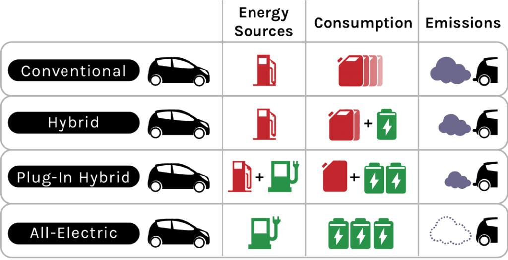 Different types of electric vehiclesThe following provides a brief description of each of the vehicle categories listed in the above figure.