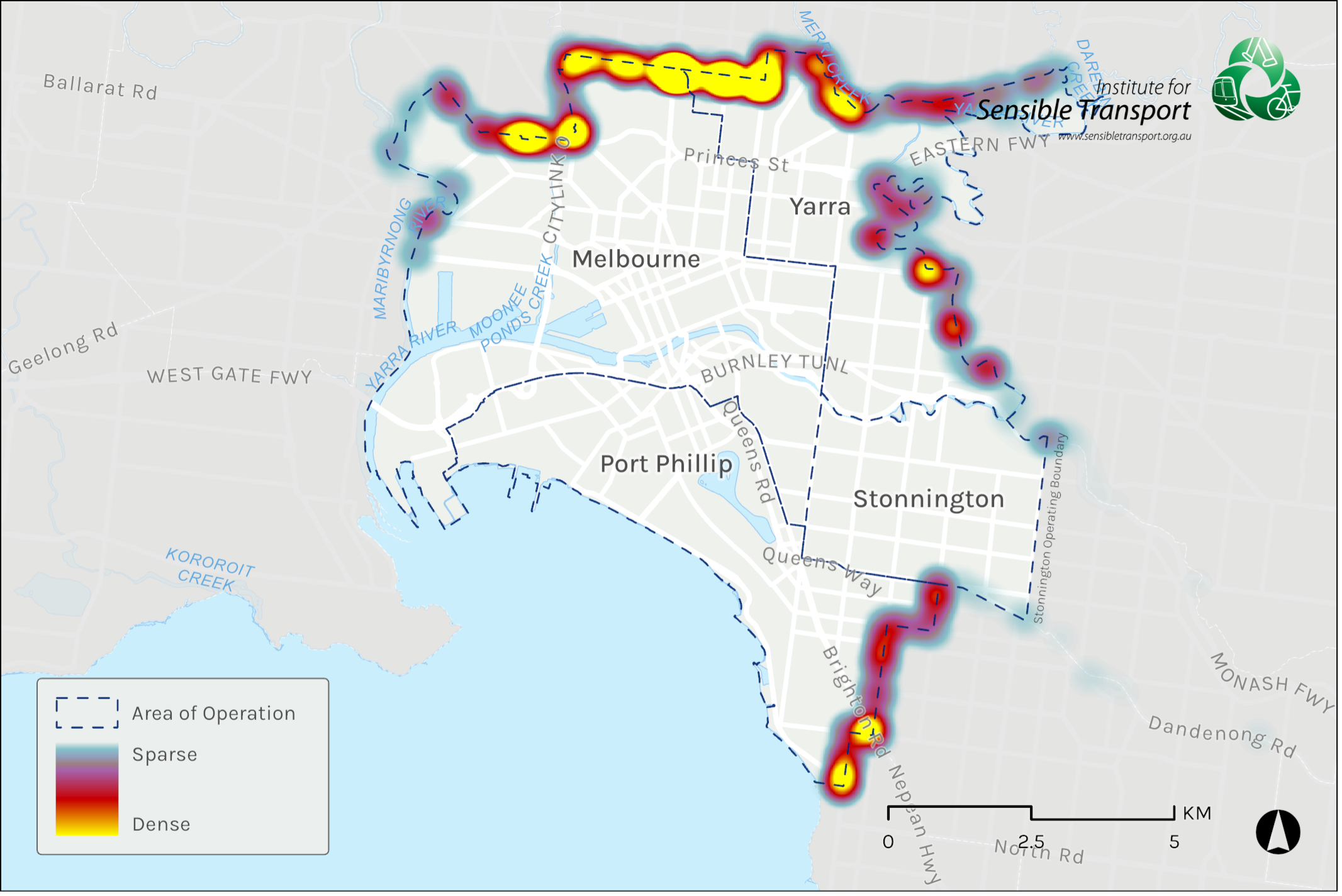 • Increase the catchment of e-bike share, to cover Melbourne’s inner and some middle ring suburbs, as identified in the map below.